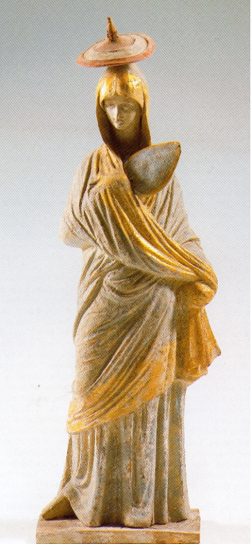 Arsinoe was not ungrateful to the old lady and her sculptor son, and she often visited them with gifts of fruits and sweets. She had introduced a dance in a peplum, which created lovely folds around the body, and asked her sculptor friend if he wanted to make a statue of her. So, they started an enterprise and both of them began to create little terracotta figurines of dancers, and ladies wrapped in mantles with hats and fans. And thus, they became the famous Tanagra idols!